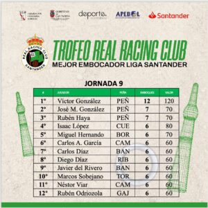 Finalizó la novena jornada de la Liga Santander y Camargo se coloca como líder en solitario con un punto de