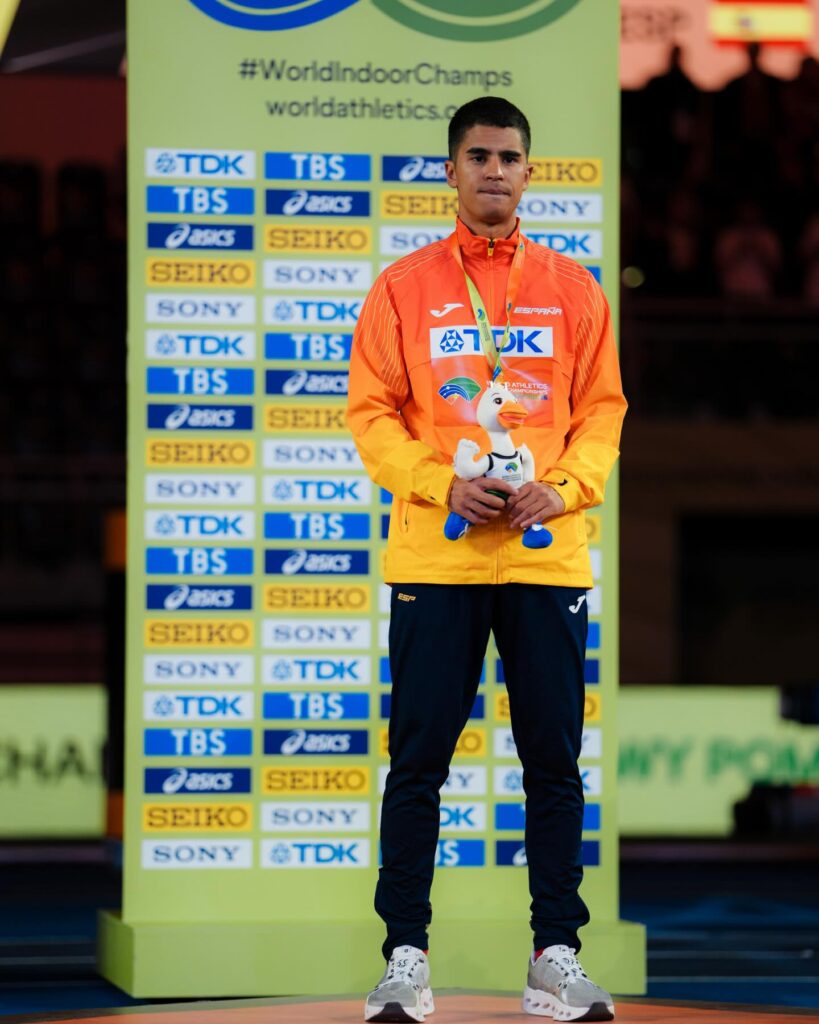 Mohamed Attaoui se cuelga la medalla de bronce en en el Mundial Indoor