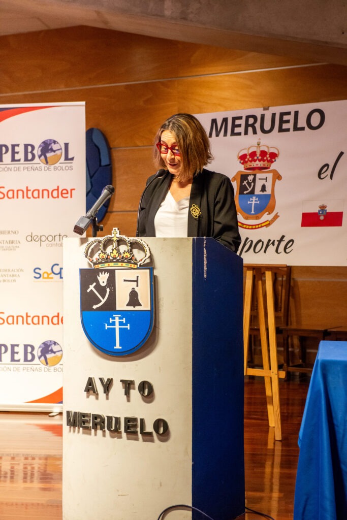 A continuación tomó la palabra la presidenta Merche Viota, que deseó “un gran año para todos”, deseando que la nueva temporada sea “apasionante, competitiva y, sobre todo, marcada por el respeto, el juego limpio y la convivencia”. Puso en valor el trabajo que se hace desde las peñas, donde muchas personas de forma desinteresada “trabajan de forma incansable día a día”. Y, de manera especial, dio la bienvenida al nuevo patrocinador, Banco Santander, “que sin duda prestigia a los bolos”, destacando la unión entre del vernáculo deporte y la empresa más internacional de Cantabria, lo supone “una gran satisfacción para esta Asociación y para todos los que formamos parte de ella”. Viota deseó que la relación entre Apebol y Banco Santander sea “sólida, exitosa y larga en el tiempo”.