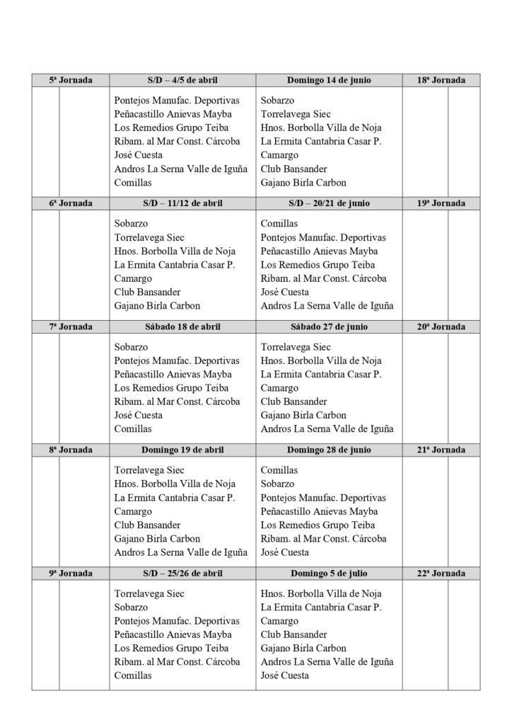 El próximo lunes, día 9, en la sede de la Federación Cántabra, se reunirán los presidentes de las 14 peñas para señalar día y hora de las diferentes partidos y completar así el calendario para que todos los aficionados pueden ir organizando sus ‘visitas’ a las diferentes boleras.