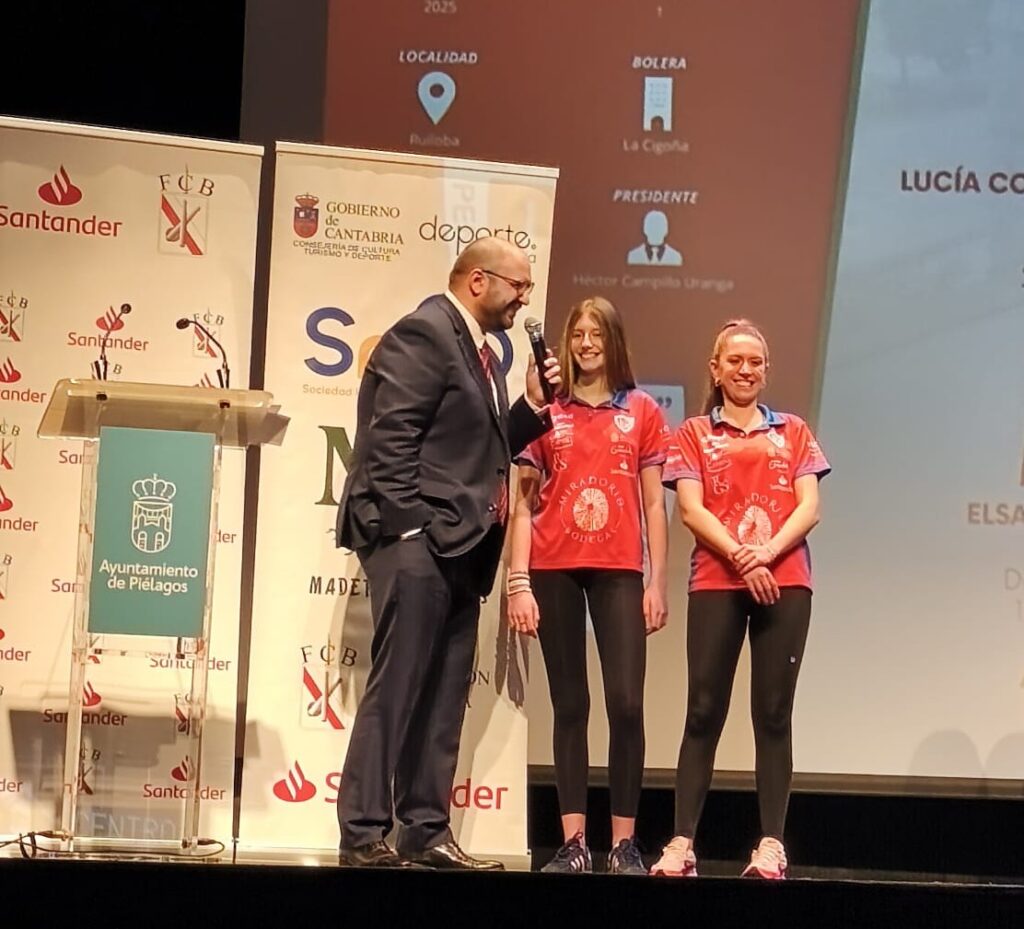 Tras las presentación de los equipos, se procedió a la entrega de los diplomas a la Mejor Jugadora de la Liga Bolos en Femenino 2025 y a la Jugadora Revelación de la temporada pasada, galardones que recayeron en Marta Castillo (Camargo) y Águeda Peña (Covadal), respectivamente.