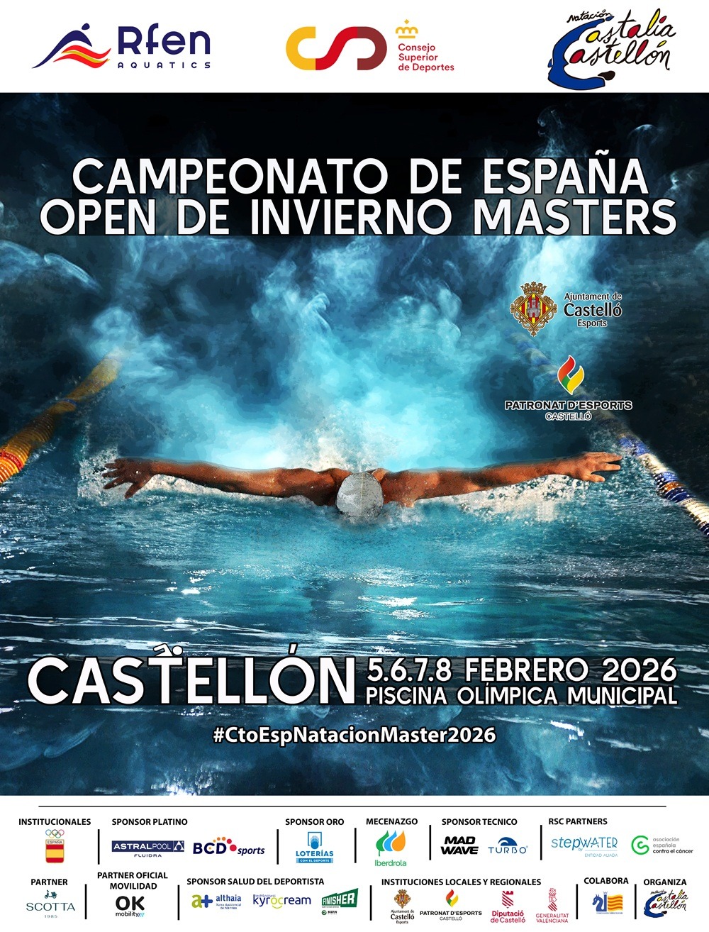 Hasta el próximo domingo se disputará en la Piscina Olímpica de Castellón el Campeonato de España Open de Natación Máster de Invierno con una participación de más de 1.700 deportistas de 194 clubes. Cantabria estará representada por 13 nadadores y nadadoras de los clubes del CN Camargo, CN Astillero y Castro Natación.