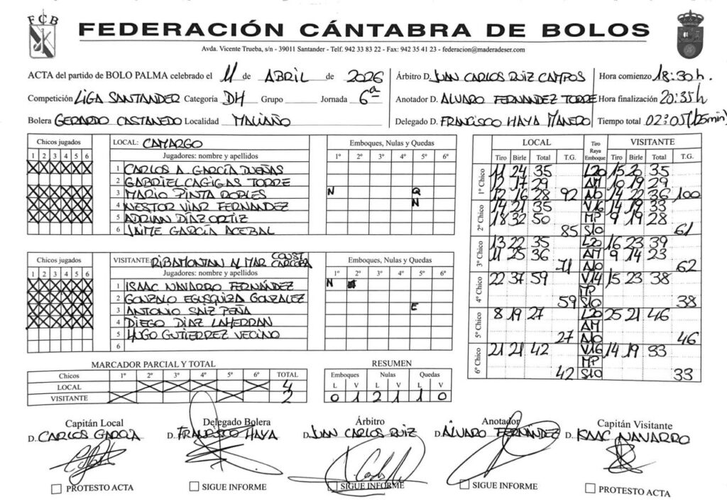 Camargo logró su tercera victoria consecutiva y se coloca a un solo punto de los santanderinos -se verán las caras en Maliaño el próximo domingo-. Los aficionados que acuden a la bolera Gerardo Castanedo se están acostumbrando a los partidos largos -este último duró dos horas y cinco minutos-, aunque para los locales de momento merece la pena. Los camargueses ganaron (4-2) a Ribamontán al Mar Construcciones Cárcoba no sin sufrir y con juego bastante irregular, con fases solventes y otras no tanto para la categoría de esta plantilla, pero lo importante son los puntos y a pesar de comenzar perdiendo el primer chico, que necesitó tres tiradas, Camargo supo reaccionar para hacerse con el triunfo, a pesar de que en el quinto se le volvieron a complicar las cosas, pero en el definitivo sí acertaron.