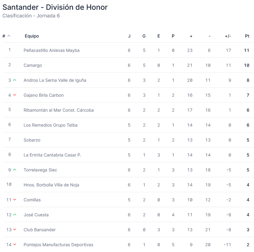 Con dos victorias locales y otras dos visitantes se resolvieron los partidos de este sábado en la Liga Santander 2026, correspondientes a la sexta jornada, que recordemos comenzó el viernes con el primer ‘pinchazo’ de Peñacastillo Anievas Mayba. Ese punto perdido en Noja por el líder ha hecho que la clasificación de la máxima categoría se apriete tras los últimos resultados.