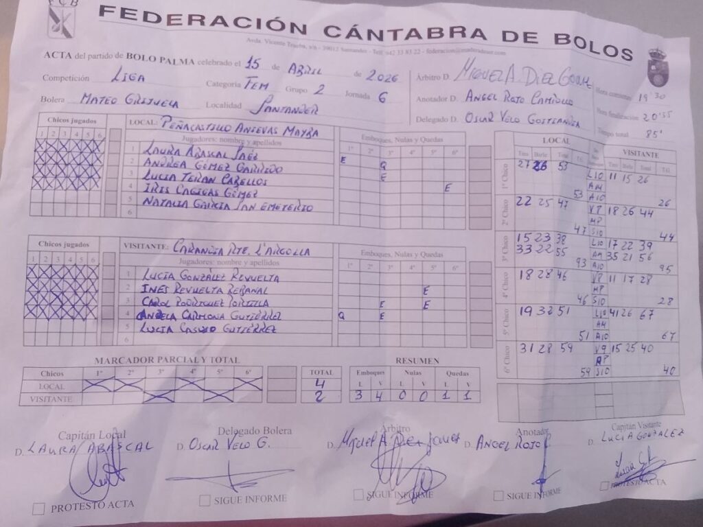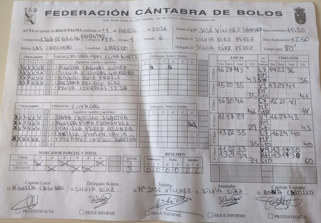 Camargo y Peñacastillo Anievas Mayba mandan en la Liga Bolos en Femenino