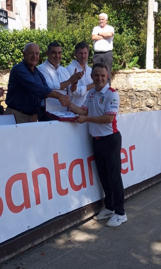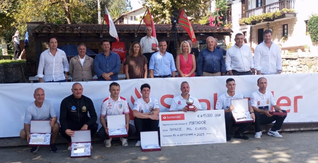 Manuel Iturbe, director Territorial del Banco Santander, y Sara Izquierdo, alcaldesa de Santillana del Mar, presidieron la entrega de trofeos y premios, acompañados por Susana Ruiz, directora general de Deportes del Gobierno de Cantabria; Juan José González, director de Empresas del Banco Santander; Julián Vélez, presidente de la Federación Cántabra de Bolos; Víctor Arjona, director de Zona del Banco Santander; Eugenio de Juana, presidente del Club Bansander; Luis Carlos Velarde, director de Zona del Banco Santander; Rafael Oceja, primer teniente de alcalde del Ayuntamiento de Santillana del Mar; y Roberto García Borbolla, director de Instituciones del Santander.
