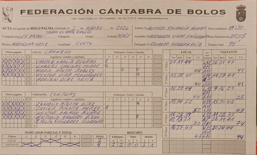 La Peña Comillas, que hacía casi siete años (25 de junio de 2019, en cuartos de final de la Copa Cantabria) no había conseguido ganar a Camargo, se convirtió este lunes en el primer finalista de la Copa Apebol-Trofeo El Corte Inglés. En 2023 estos dos equipos jugaron la final de esta competición y entonces fueron los camargueses los que se hicieron con el título, pero hoy han sido los comillanos los que se han llevado ‘el gato al agua’, sacándose la ‘espinita’ de aquella derrota, metiéndose en una final en la que tendrá como rival al ganador del encuentro Ribamontán al Mar Construcciones Cárcoba-Andros La Serna Valle de Iguña, que se jugará el próximo miércoles, día 4, en la misma bolera Marcelino Ortiz Tercilla de Cueto.