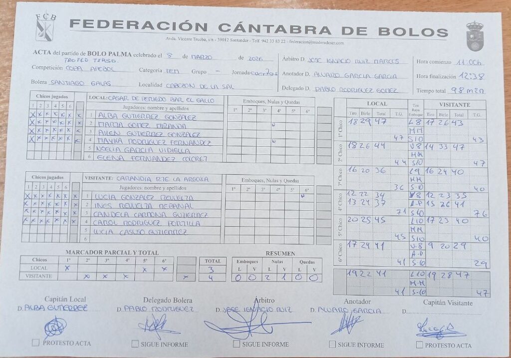 Por su parte, el chico de desempate sí que necesitó Carandía Restaurante L’Argolla para derrotar (3-4) a Casar de Periedo Bar El Gallo. Las de Piélagos llegaron a ir ganando por 1-3, pero las de Casar, que comenzaron perdiendo, lograron empatar y jugárselo a un chico. Las locales (10 metros) hicieron sus deberes cerrando (41) y las visitantes (media a mano) también, pero derribando seis bolos más (47) que le dio la victoria final.