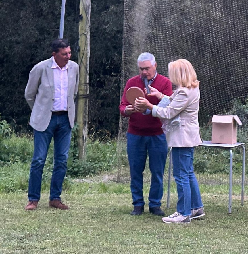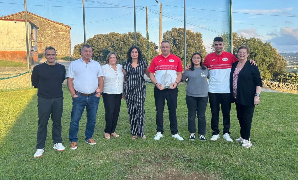 Durante la entrega de premios, el Ayuntamiento de Arnuero rindió un pequeño, pero emotivo homenaje a José Antonio Maza, durante muchos años directivo de la Federación Cántabra de Bolos, en reconocimiento a su trabajo en pro de la modalidad de pasabolo losa. María del Carmen Pérez, teniente-alcalde de Arnuero, entregó a Maza un bonito detalle.