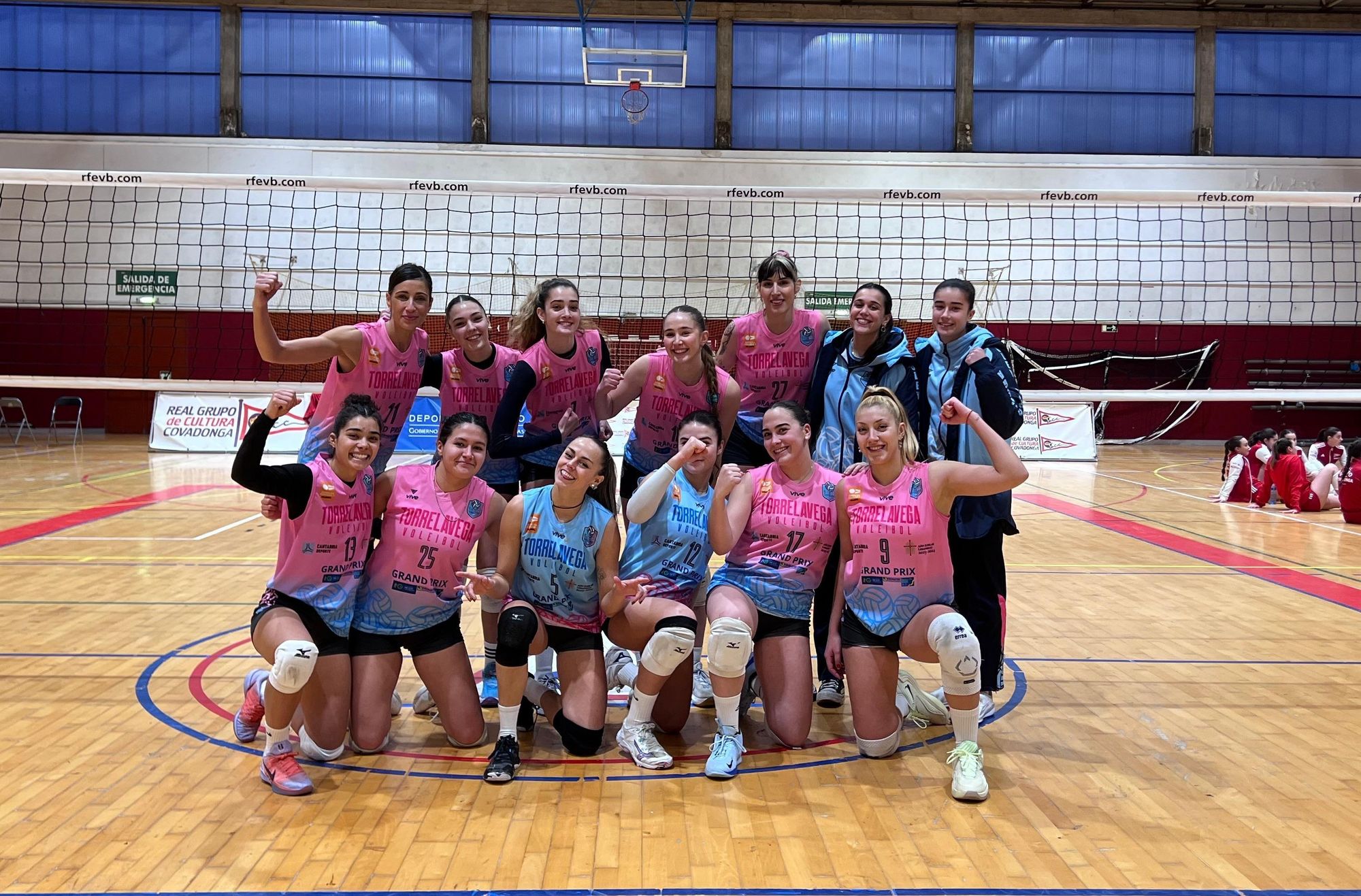 El partido arrancaba con un primer set muy igualado, con intercambio constante de puntos y sin que ninguno de los dos equipos lograse romper el marcador. A lo largo del set, las nuestras supieron mantenerse firmes y competir cada acción, aunque el juego se vio momentáneamente detenido tras un choque fortuito entre Julia y Trini que nos dio un pequeño susto, con Julia algo mareada. Afortunadamente, todo quedó en un susto y el equipo supo recomponerse rápidamente. Cabe destacar además el regreso de Trini a las canchas tras su lesión, aportando intensidad y compromiso desde el primer momento en el que entró al campo. El set avanzaba punto a punto hasta llegar a un emocionante 24-24. Fue entonces cuando el CV Torrelavega mostró sangre fría. Un ataque de Nielsen mantenía la igualdad y, ya en los puntos decisivos, Lydia se hacía enorme en la red para cerrar el set con un bloqueo y un ataque consecutivos que nos daban el 25-27.