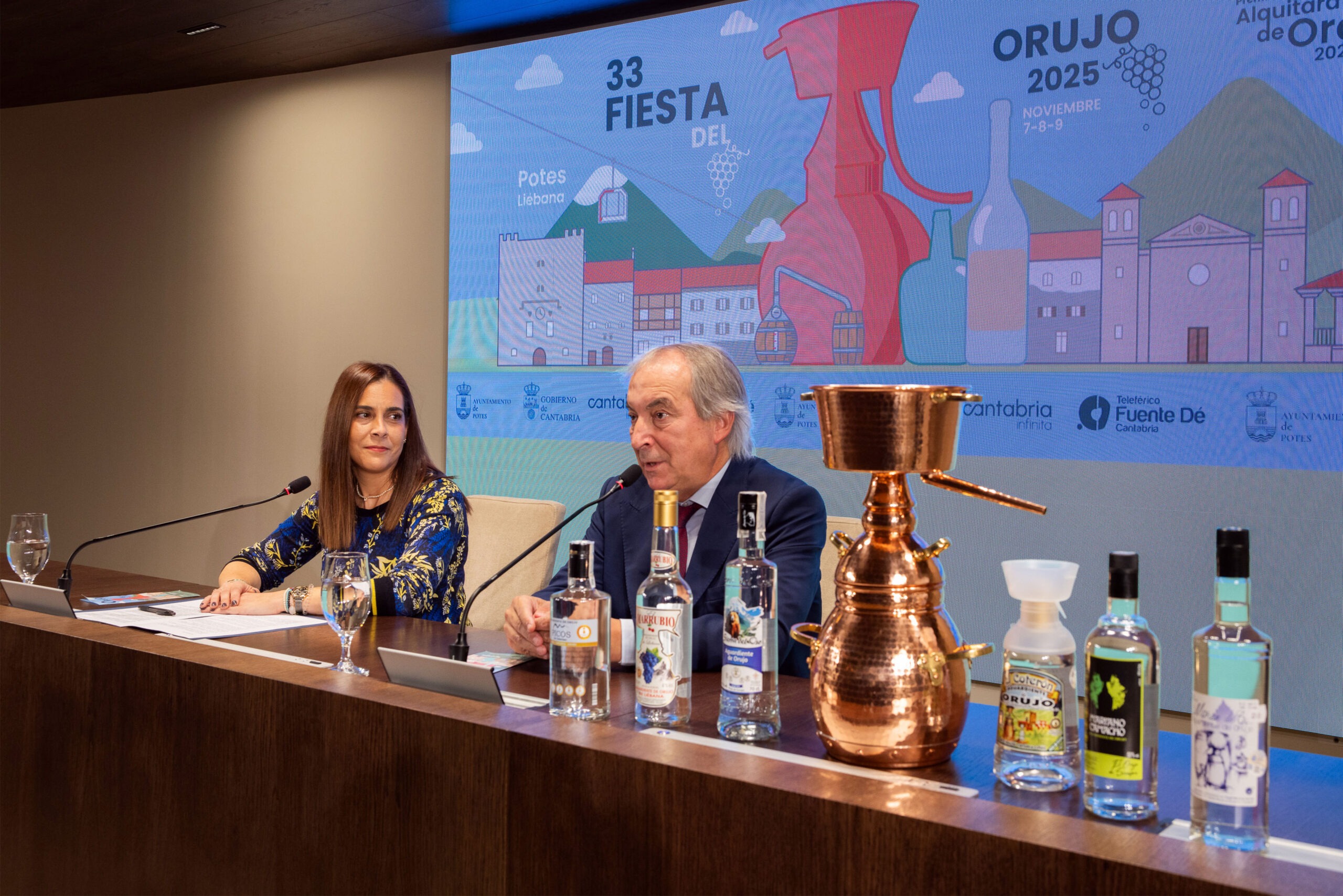 La directora general de Turismo y Hostelería, María Saiz, y el alcalde de Potes, Javier Gómez, han presentado este martes la edición de 2025, que se cerrará el domingo, 9 de noviembre, con la entrega de la Alquitara de Oro al Mejor Orujo del Año.