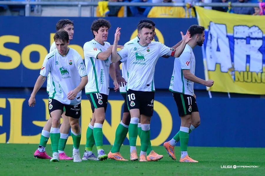 - El equipo cántabro remonta en el Nuevo Mirandilla de Cádiz con tres golazos y cierra su ‘semana fantástica’ (2-3) en lo alto de la clasificación, merced a la derrota del Deportivo en casa frente al Castellón (1-3)