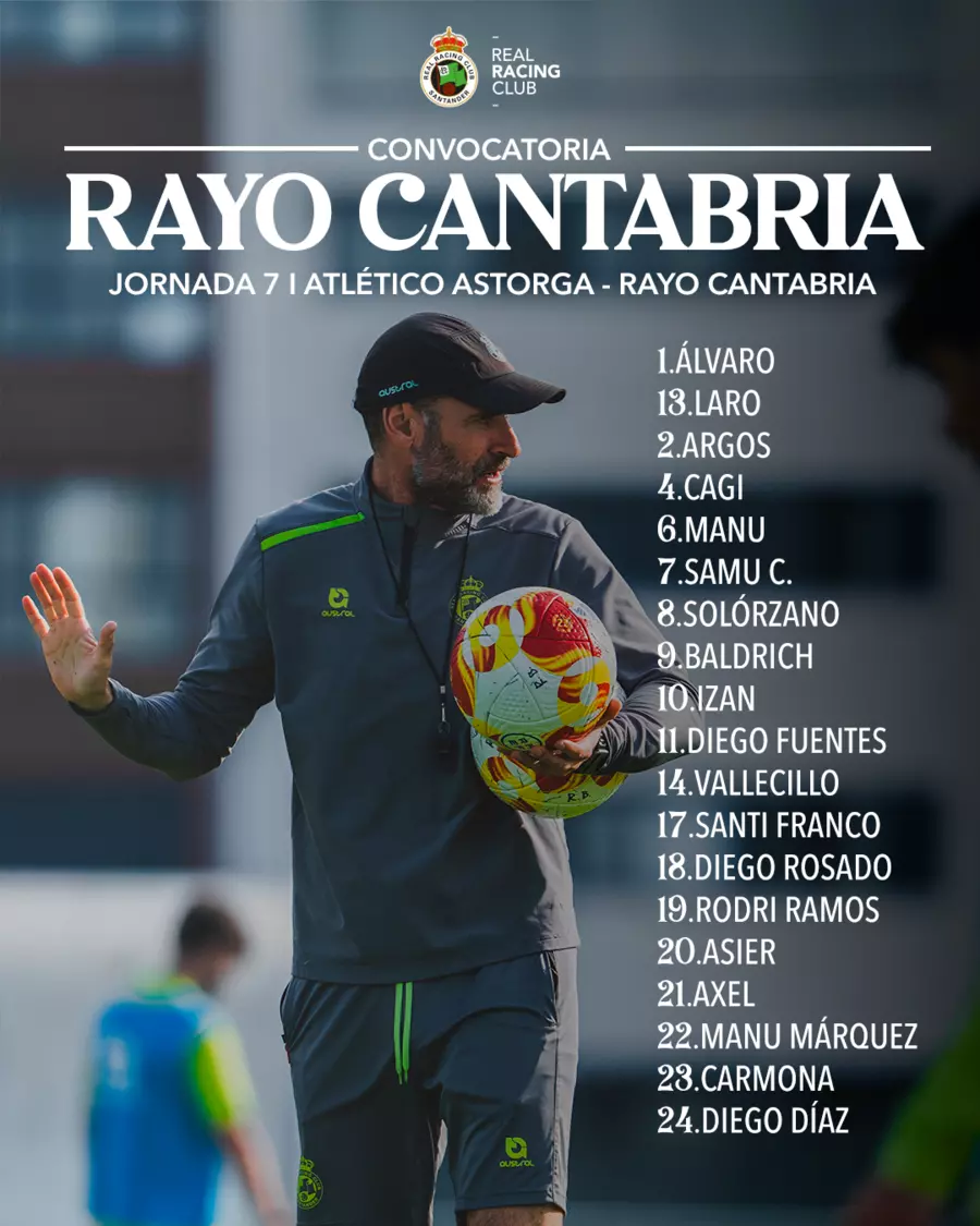El Rayo Cantabria disputa la séptima jornada del Grupo I de Segunda Federación en el Campo Municipal la Eragudina, será la primera vez que el filial racinguista visite el feudo astorgano. Los verdiblancos se desplazan a tierras castellanoleonesas este sábado, 18 de octubre, a las 17:00 horas para enfrentarse al Atlético Astorga.
