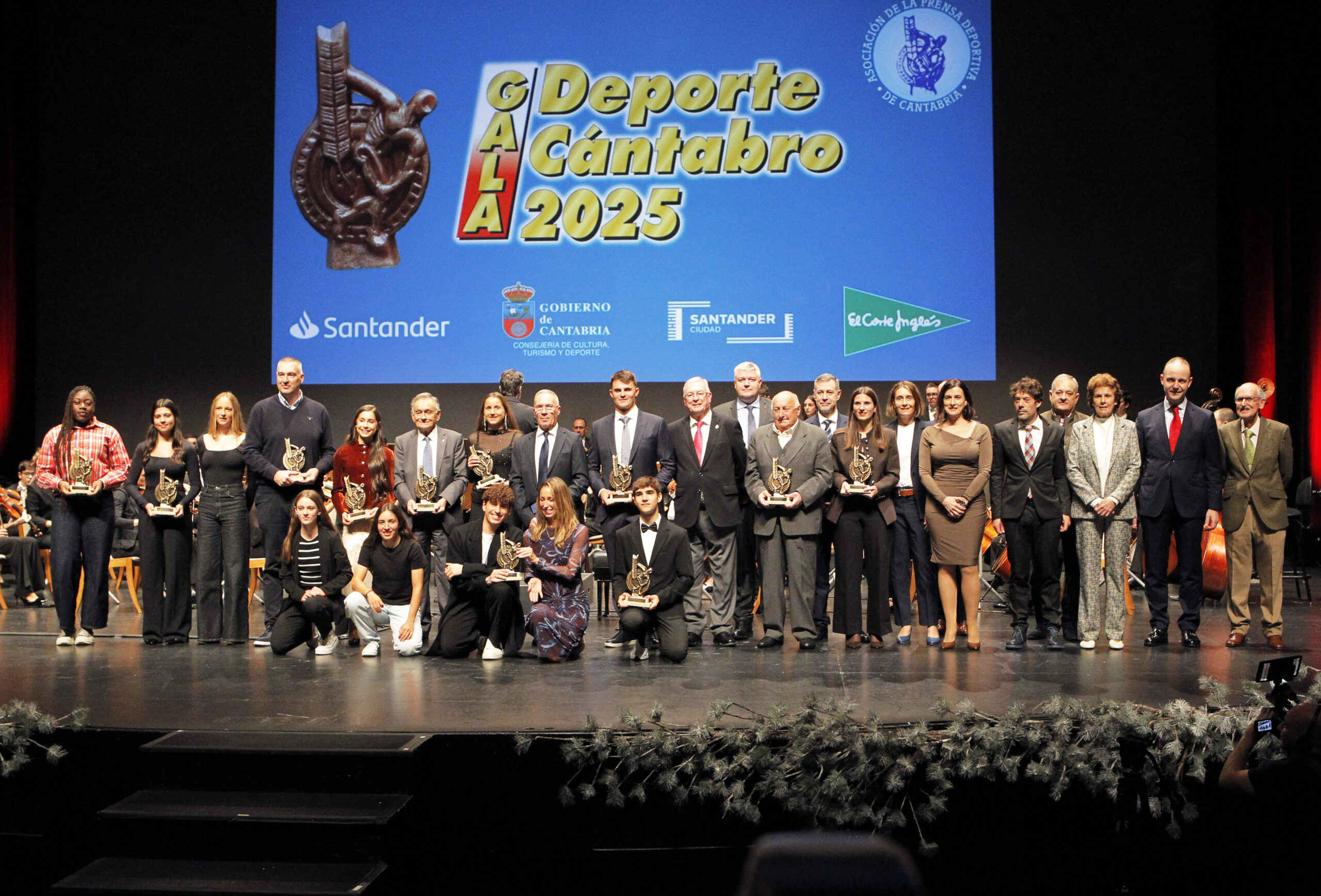 Durante aproximadamente dos horas, Juan Carlos de la Fuente llevó las riendas de una gala, que cumplió su trigésimo primera edición, y que una vez más dejó patente la excelente salud de la que goza el deporte cántabro, que se resume, como dijo Juan Antonio Prieto, presidente de la Asociación de la Prensa Deportiva de Cantabria, organizadora del evento, “en 11 medallas de oro, dos de plata y una de bronce, en Campeonatos del Mundo y 10 medallas de oro, cuatro de plata y seis de bronce, en Campeonatos de Europa. Siendo esto solo una parte del balance que presentan los deportistas cántabros en 2025. Y todo en una región de poco más de medio millón de habitantes”. Prieto, tras agradecer el apoyo de todos los patrocinadores “grandes y pequeños” para poder llevar a cabo esta gala, también hizo hincapié en los éxitos de las promesas y de las féminas “lo que significa que hay un gran relevo” y mientras haya “grandes deportistas, aquí estará la APDC para darles visibilidad y para brindarles una gran fiesta como ésta”.