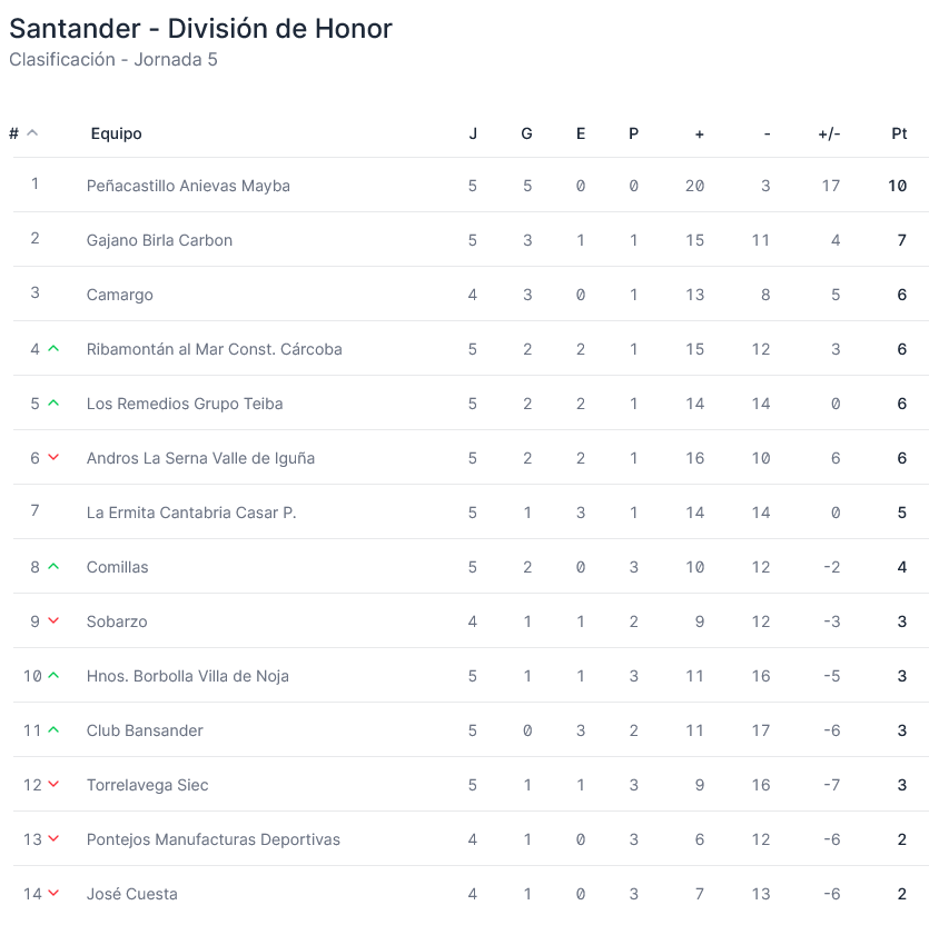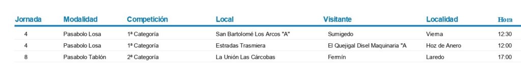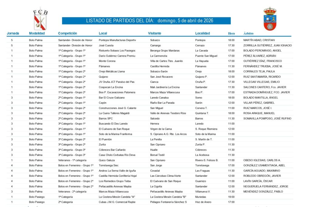 Dos partidos cerrarán este domingo esta quinta jornada. Pontejos Manufacturas Deportivas y Sobarzo se verán las caras en Las Callejas; y José Cuesta recibirá en Cerrazo a Camargo.