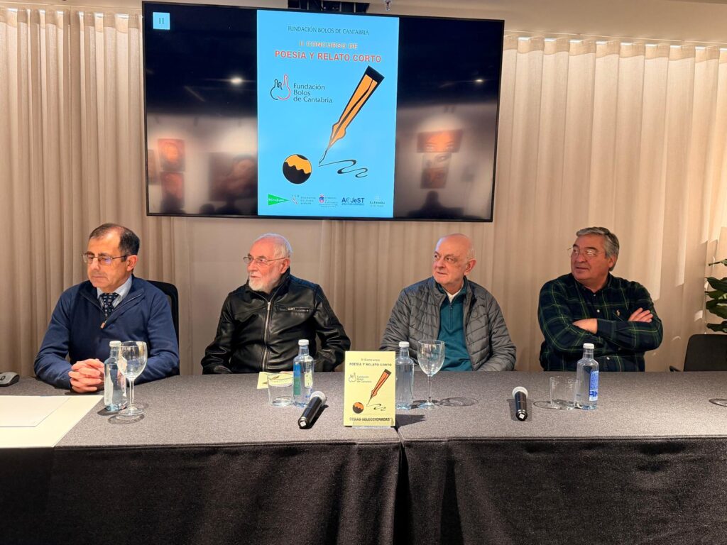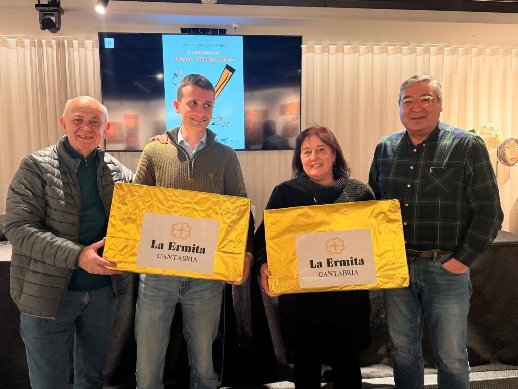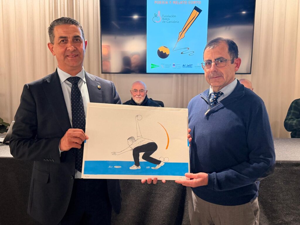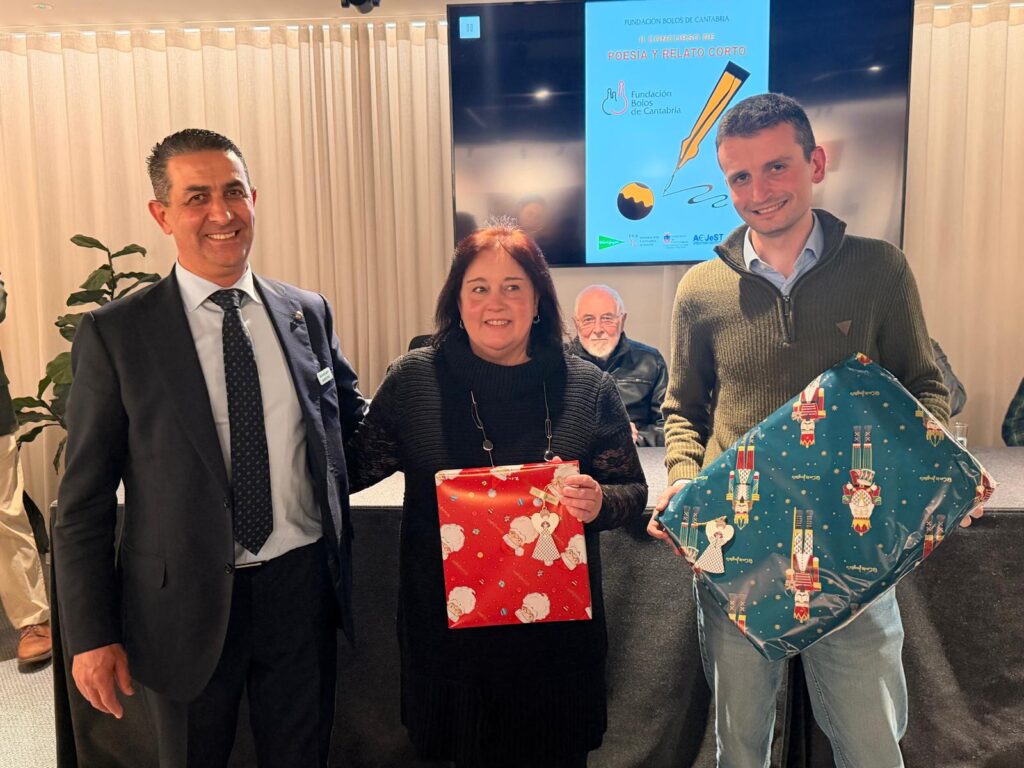 La Fundación Bolos de Cantabria celebró en la Sala de Ámbito Cultura de El Corte Inglés el acto de entrega de los premios del II Concurso de Relato y Poesía, ganado por Javier Fernández-Regatillo Vega, bajo el seudónimo de ‘Finch’, y con la obra titulada ‘El camino a casa’; y Carmen Ruiz Ruiz, con el alias ‘Clementina’, y la obra ‘El temblor del héroe’. Ambos recibieron la preciosa litografía titulada ‘Jugador de bolos’, numerada y firmada por el autor, el reconocido artista cántabro Pedro Sobrado, un diploma conmemorativo; una cesta de productos de La Ermita Cantabria; y un regalo de El Corte Inglés.