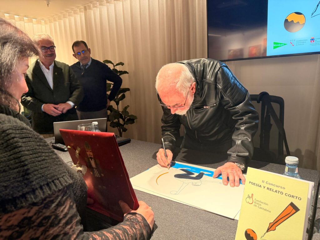 El acto, sencillo y muy ameno, estuvo presidido por Juan Amenábar, presidente de la Fundación Bolos de Cantabria, acompañado por Juan Francisco Quevedo, ‘alma mater’ de este concurso, Enrique Torre, patrono de la Fundación; Javier Díaz Abella, coordinador de la Sala de Ámbito Cultural de El Corte Inglés; y el artista Pedro Sobrado, que a sus casi 90 años hizo gala de una extraordinaria salud y buen humor.