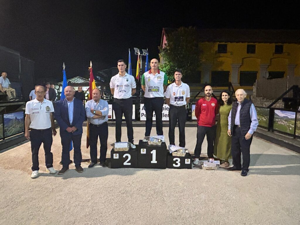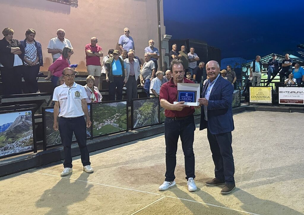 La organización, perfecta, corrió a cargo de la Peña Bolística Peñamellera Baja, que junto al Ayuntamiento de Peñamellera Baja y antes de la final realizaron un reconocimiento a Manuel Monje Torre, fallecido en Arriondas en septiembre de 2024 a los 95 años de edad, “por su aportación a los bolos en Asturias”, como reza en la placa que el alcalde José Manuel Fernández entregó a uno de sus hijos.