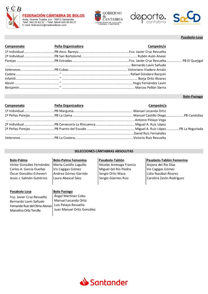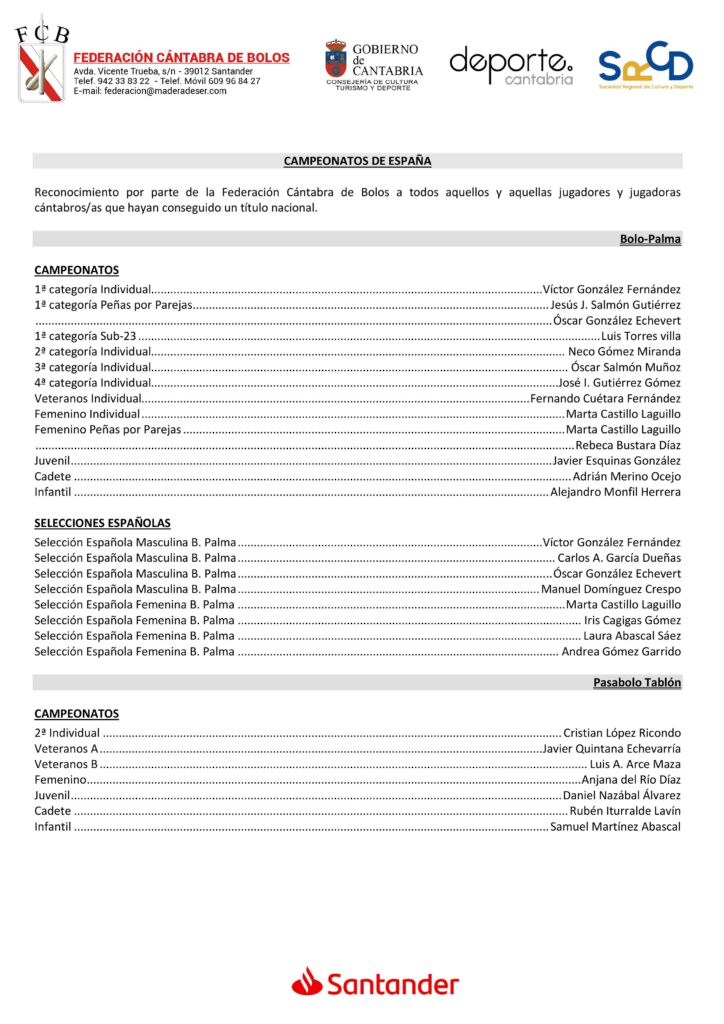 El Aula de Cultura Doctor Velasco de Laredo fue escenario de una ‘multitudinaria’ Gala de Campeones en la que la Federación Cántabra de Bolos entregó los diplomas a los ganadores de los Circuitos y campeones regionales de todas las modalidades y categorías, asimismo fueron reconocidas las peñas organizadoras y nominadas todas las selecciones cántabras. Por último, tuvieron una distinción por parte de la FCB los deportistas que lograron alguno de los Nacionales en este 2025, que está a punto de finalizar.