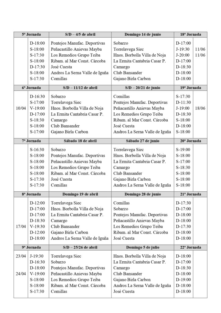 - La Federación Cántabra hace público el calendario definitivo de la División de Honor, cuya primera jornada comenzará el fin de semana del 14 y 15 de marzo
