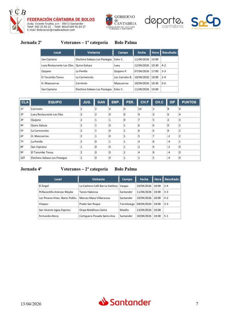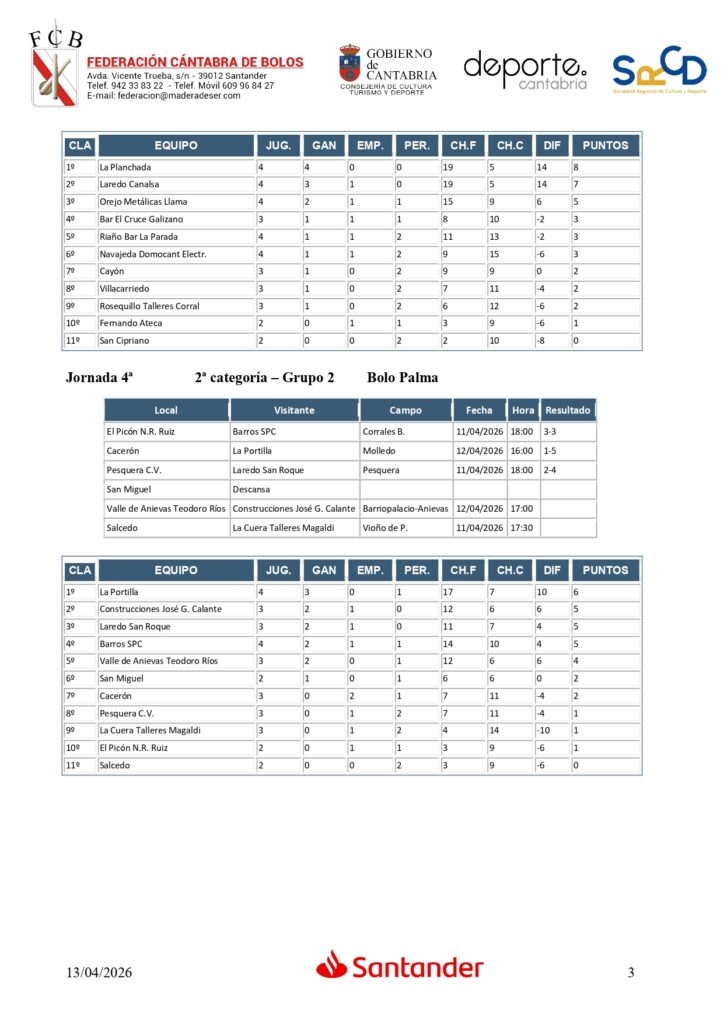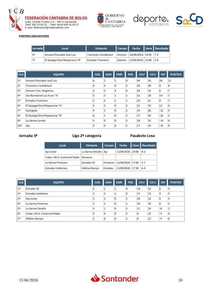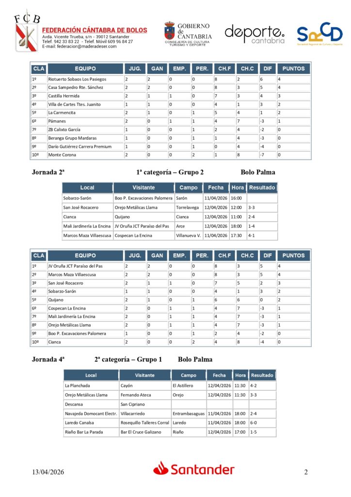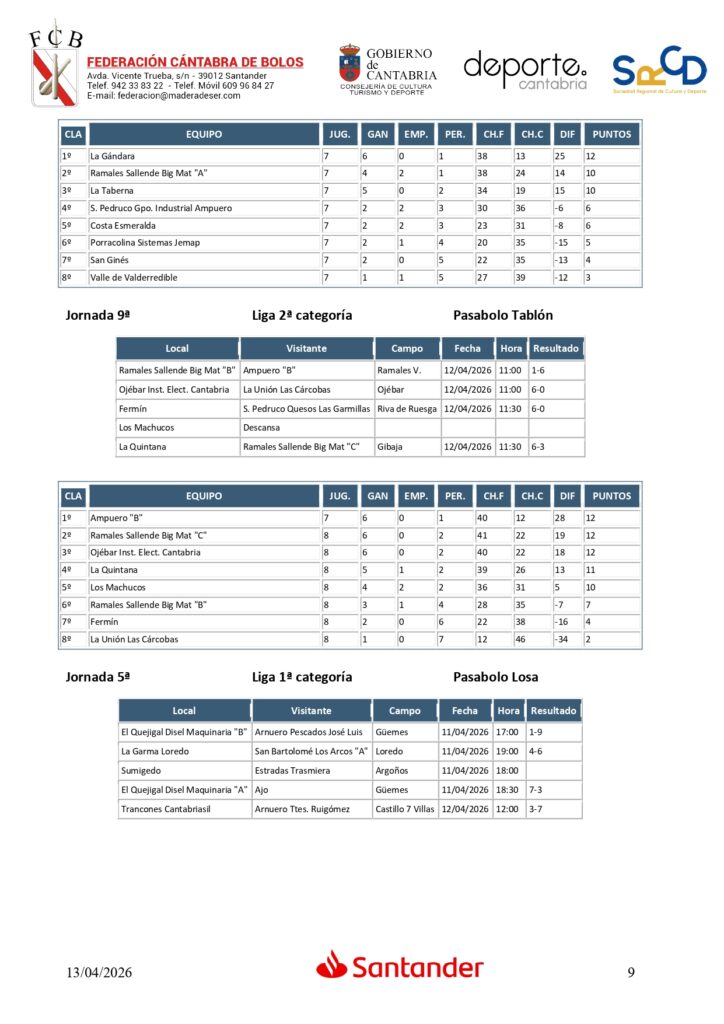 Y en Segunda categoría, triple empate en la cabeza con Ampuero B, Sallende Big Mat C, que perdió su segundo encuentro, y Ojébar Inst. Elect. Cantabria; y a punto de estos tres equipos La Quintana, que fue precisamente el ‘verdugo’ de Ramales C.
