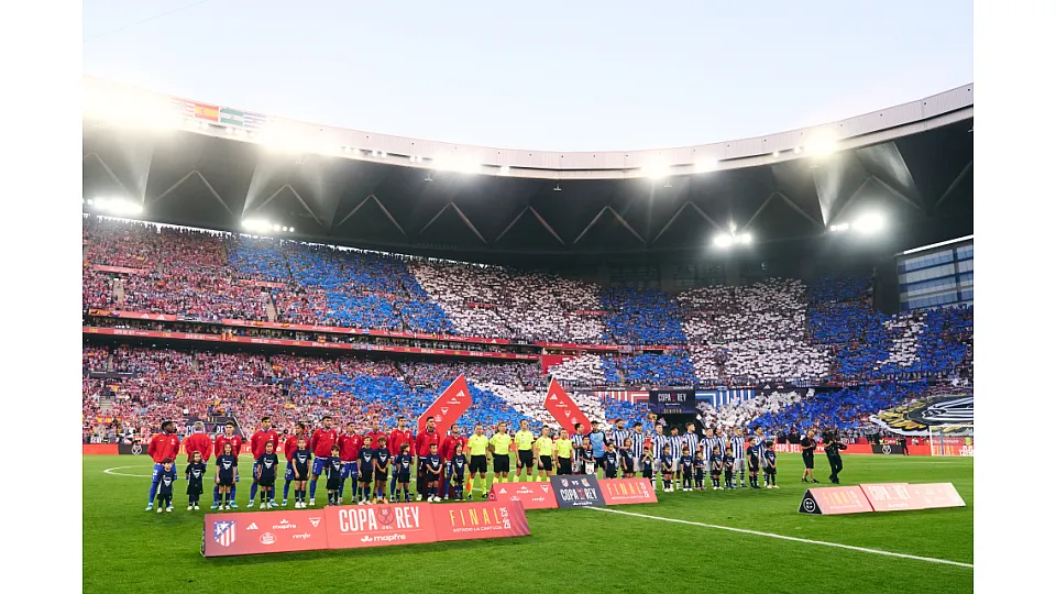 Incidencias: Final de la Copa de SM el Rey 2026, celebrada en el Estadio La Cartuja de Sevilla ante 70.000 espectadores. Su Majestad el Rey Don Felipe VI presidió el partido junto a Rafael Louzán, presidente de la Real Federación Española de Fútbol. El monarca entregó el trofeo de campeones al capitán de la Real Sociedad de Fútbol, Mikel Oyarzabal. El himno de España sonó en La Cartuja entre división de opiniones de los aficionados. Los seguidores vascos pitaron, pero fueron silenciados por las ovaciones de los hinchas rojiblancos.