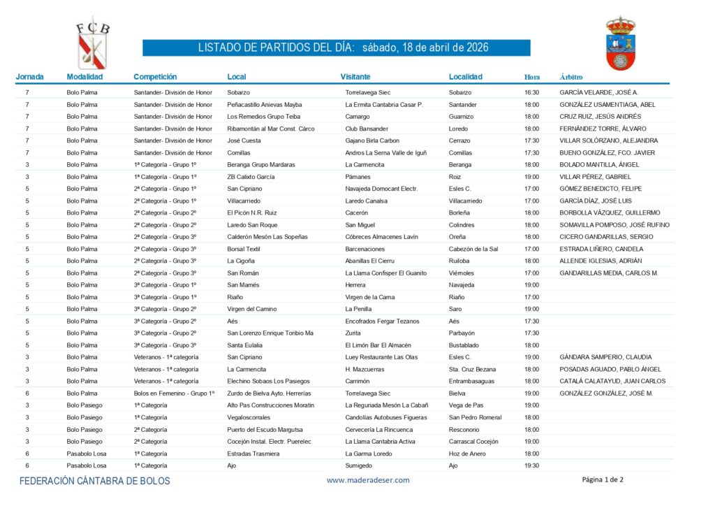- La séptima jornada de la Liga Santander se completa hoy, sábado, con seis partidos en Sobarzo, Santander, Guarnizo, Loredo, Cerrazo y Comillas