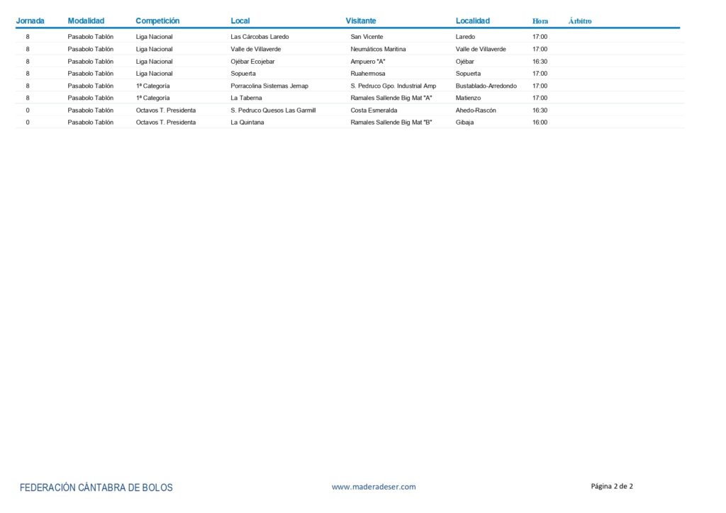 El partido jugado ayer en Cueto, correspondía a la octava jornada. Este sábado se completa la séptima, que comenzó el jueves con el triunfo (0-4) de Hnos. Borbolla Villa de Noja frente a Pontejos Manufacturas Deportivas, con lo que para esta tarde están programados seis encuentros en los que el líder Peñacastillo Anievas Mayba recibirá en la Mateo Grijuela a La Ermita Cantabria Casar de Periedo; Los Remedios Grupo Teiba recibirá en Muslera a Camargo; Andros La Serna Valle de Iguña visita a Comillas, que no ha perdido ningún encuentro en casa; José Cuesta tendrá como rival a Gajano Birla Carbón; Sobarzo, a Torrelavega Siec; y Ribamontán al Mar Construcciones Cárcoba a Club Bansander.