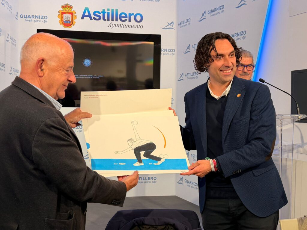 La Fundación Bolos de Cantabria obsequió a Javier Fernández Soberón y a Alejandro Hoz con sendas litografías del ‘Jugador de Bolos’, obra del pintor cántabro Pedro Sobrado en agradecimiento a su hospitalidad y atenciones. El alcalde de Astillero abrió las puertas de su municipio “siempre” a los bolos y sus gentes; y agradeció a la Fundación haber elegido este lugar para esta presentación “porque Astillero no es otra casa, sino que siempre será vuestra casa”.