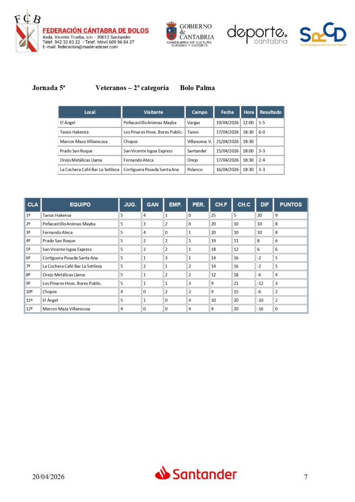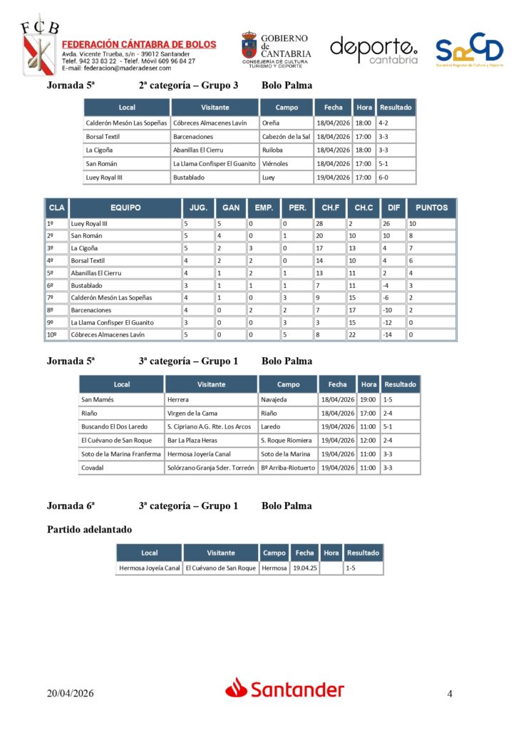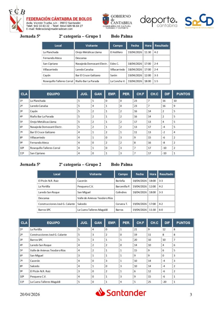 En el grupo 2, la igualdad persiste entre Junta Vecinal de Oruña JCT Paraíso del Pas, Marcos Maza Villaescusa y San José Rocero, todos ellos sin conocer la derrota, pero habiéndose dejado un punto cada uno por el camino. Quijano es cuarto a dos puntos.