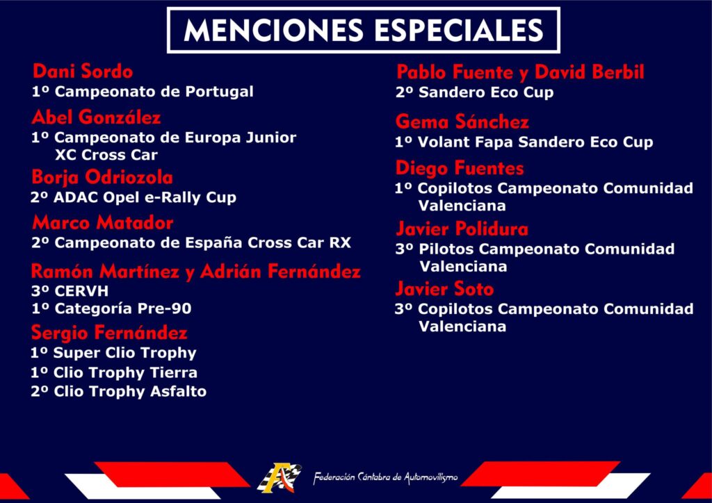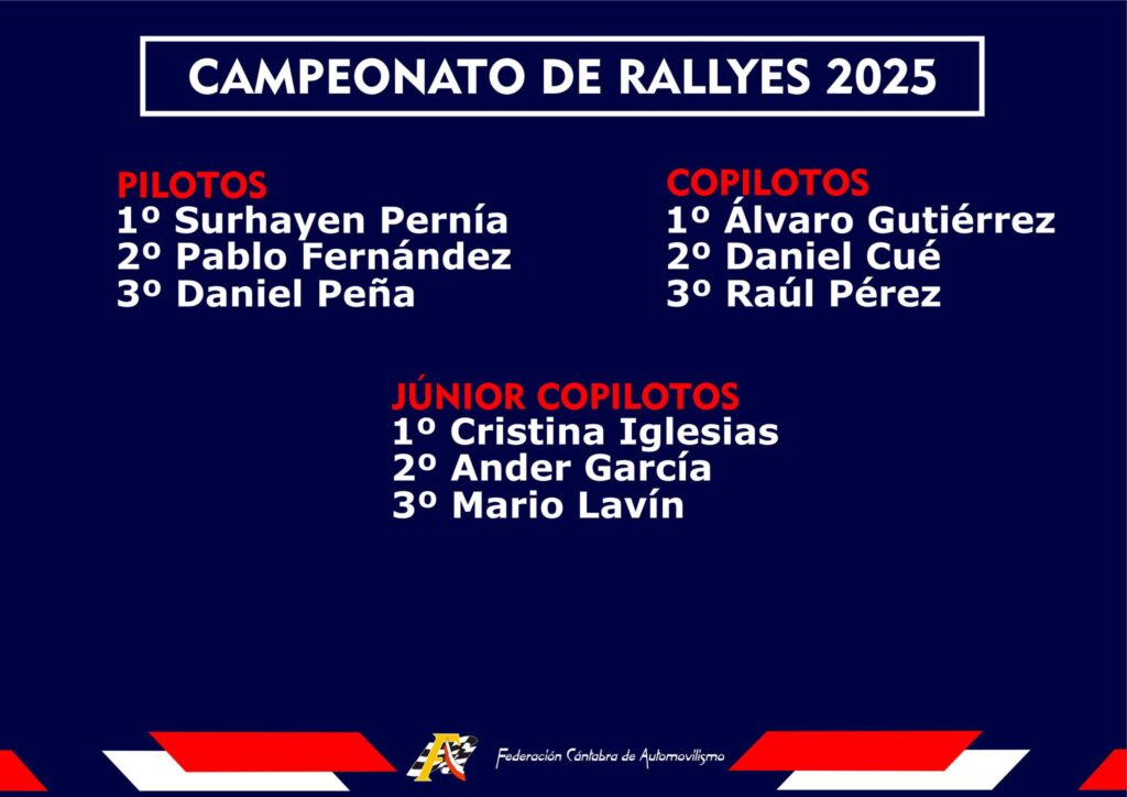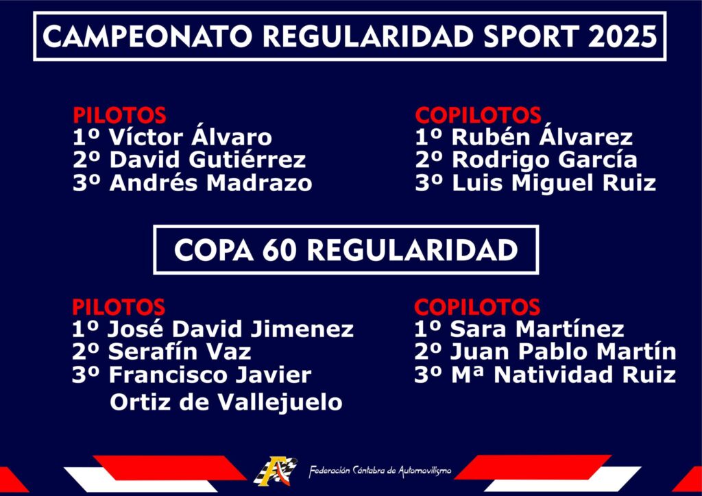 La Gala de Campeones de la Federación Cántabra de Automovilismo se celebrará este sábado, 14 de febrero, en el Polideportivo de Santa María de Cayón, a partir de las 19:30 horas. Los diferentes deportistas y escuderías recibirán sus galardones como reconocimiento al esfuerzo, la constancia y los logros alcanzados durante el año 2025. SportpublicTV ofrecerá en directo el evento a través de su canal de YouTube.