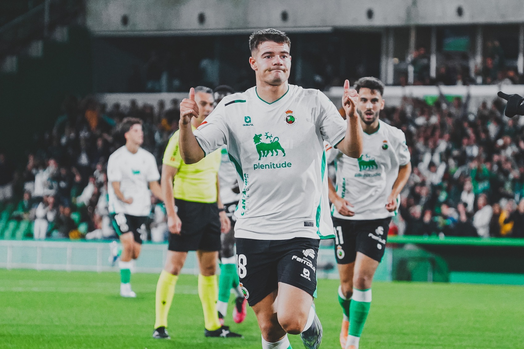 Incidencias: duodécima jornada de LaLiga Hypermotion 2025/26. Campos de Sport de El Sardinero. 18.723 espectadores. Antes del comienzo del encuentro Jeremy recibió el premio como ‘Mejor Jugador’ del mes de octubre de Segunda División y se guardó un minuto de silencio -al ser la víspera del día de Todos los Santos- en memoria de todos los racinguistas que fallecieron el último año. El capitán verdiblanco, Mantilla, depositó en el centro del campo un centro de floral en su memoria.